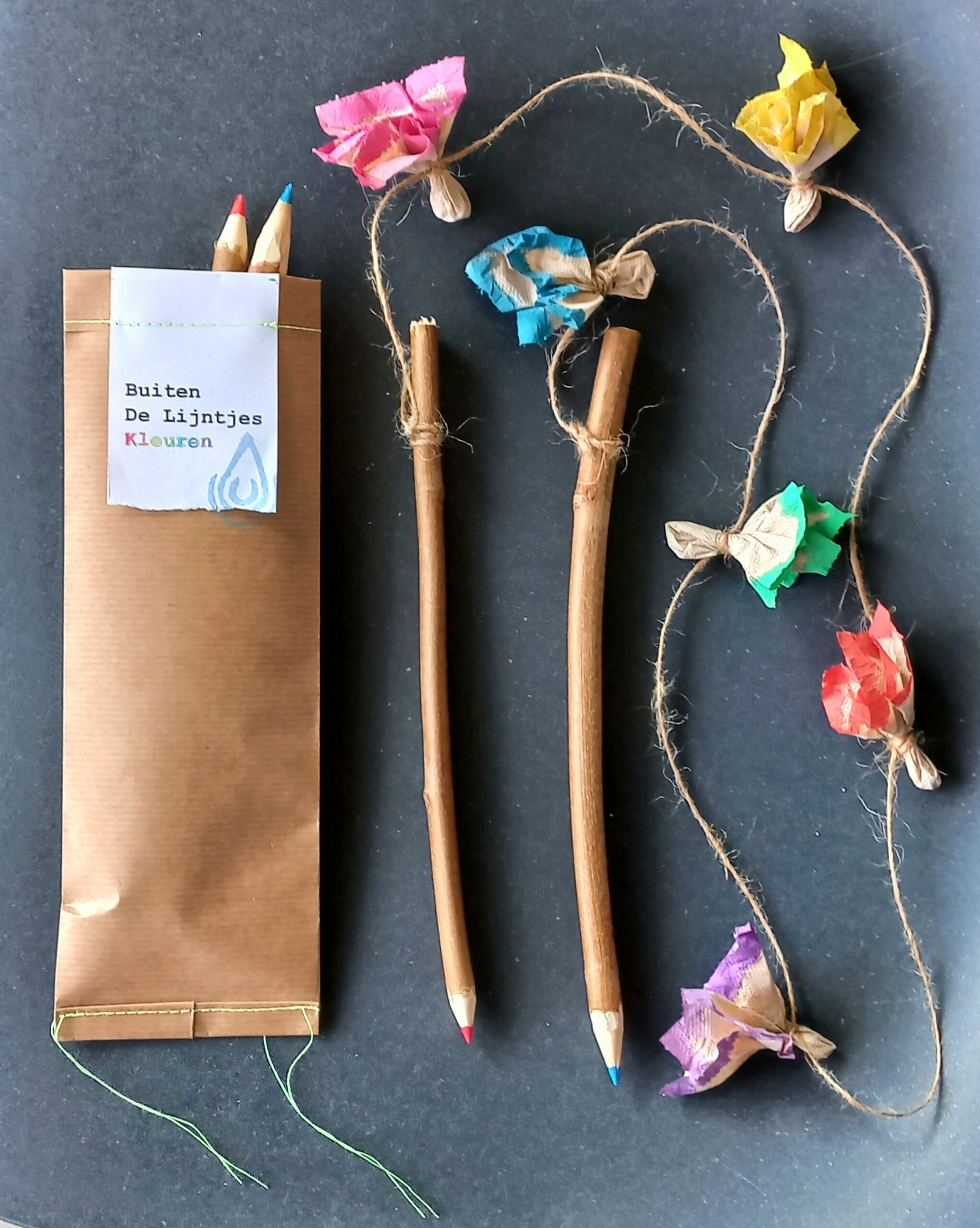 Inhoud: Zakje inclusief potloodjes, lijntje met zaadzakjes en beschrijving.