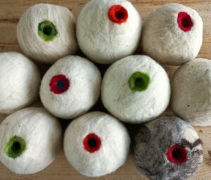 Het handgevilte ZorgdragerEitje is volledig van wol van de Roermondse schaapskuddes en geschikt voor kleinere tuinvogels als de kool- en pimpelmees. Andere afmetingen op aanvraag.
