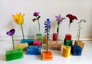 Wie heeft er vroeger niet mee gespeeld: houten blokken?! Wij tikten er een aantal op de kop en gaven ze een tweede leven. Als BloemBlokje! Mooi voor kleine (droog)bloempjes, veertjes of en andere vondsten, alleen of met meerdere bij elkaar. Maar er je eigen bouwwerk van!